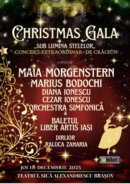 Orchestra Simfonică Liber Artis vă va purta într-o călătorie în lumea magică a compozițiilor muzicale tematice, semnate de marii maeștri precum: Johann Strauss, Johannes Brahms, Constantin Dimitrescu, Eugen Doga, Franz Lehar, Iosif Ion Ivanovici, Dimitri Șostakovici, culminând cu frumoasele teme de Crăciun ale lui Leroy Anderson. Dirijată de Roxana Zaharia, această incursiune muzicală se va desfășura sub semnul rafinamentului artistic, grației și pasiunii, prin prezența sopranei Diana Ionescu și a carismaticului bariton Cezar Ionescu. Baletul ansamblului, alcătuit din balerini talentați ai Operei Naționale Române din Iași, va completa spectacolul prin mișcări pline de eleganță și expresivitate, transformând fiecare moment într-un adevărat univers vizual și festiv.