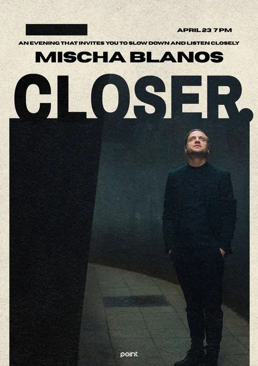 Pe 23 aprilie, Mischa Blanos te invită la o seară specială la POINT, conturată de intimitatea unui spațiu teatral. Redus la esență, artistul performează exclusiv cu instrumente electronice, construind un sound cald și imersiv.
